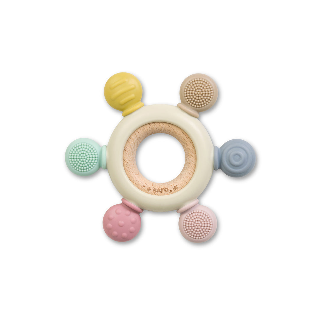 Mordedor sensorial em madeira/silicone